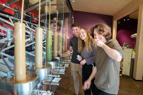 Die Schokoladenfabrik wurde einst im Stall der Eltern gegründet und ist zu einem Kompetenzzentrum für Schokolade herangewachsen. Unser Familienunternehmen wurde 1987 gegründet, dann kam die Pleite und 1999 haben wir die Schokofabrik eröffnet. Josef und Ulrike Zotter leiten gemeinsam das Unternehmen. Die vielen neuen Ideen und Sorten entwickelt Josef Zotter, gemeinsam mit seiner Tochter Julia. Sohn Michael ist der IT-Experte und die jüngste Tochter Valerie besucht noch die Hotelfachschule. In Riegersburg sind rund 240 Mitarbeiter*innen beschäftigt, die jeden Tag frische Schokolade produzieren und sich um alles kümmern, was rundum notwendig ist. Von der Kakaobohne bis zur fertigen Tafel wird bei uns alles im Haus hergestellt. Das Rösten, Mahlen, Walzen und Conchieren wird in kleinen Chargen gemacht und individuell auf den Kakao abgestimmt. Wer wissen will, wie Schokolade entsteht, kann unser Schokoladen-Theater besuchen und live miterleben, wie sich Kakaobohnen in Schokolade verwandeln, wie handgeschöpfte Schokoladen gefüllt werden und vieles mehr. Wir verwenden nur bio und fair gehandelte Rohstoffe, weil es einfach besser für Mensch und Umwelt ist! Als Produzent ist es unsere Verantwortung, dass wir nachhaltig produzieren und Mehrwert schaffen statt großer Gewinne, die auf Kosten der Gesellschaft und Umwelt gehen. Unsere Schokoladen-Fabrik zählt zu den nachhaltigsten Unternehmen Österreichs. Unsere Mitarbeiterinnen und Mitarbeiter bilden die Grundlage unseres Erfolges. Ohne ihren Arbeitseinsatz, die Zusammenarbeit im Team und das in das Unternehmen gesetzte Vertrauen wären wir nicht dort, wo wir heute stehen. Im Gegenzug für dieses Vertrauen kann sich unser Team auf einen spannenden Arbeitsplatz und einen überaus engagierten Arbeitgeber verlassen.